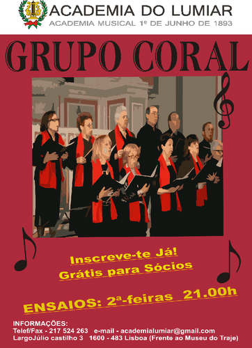 A partir de Novembro, o Coro irá ter novo horário, passando a reunir todas as segundas-feiras, a partir das 21.00h. Tal como nos anos anteriores, o Grupo Coral é uma actividade grátis para todos os associados da Academia. Orientando pelas mãos do Maestro Filipe Taborda, o grupo aceita igualmente novos elementos. Mais do que grandes vozes, o Grupo Coral da Academia procura membros com grande entrega e vontade em aprender.