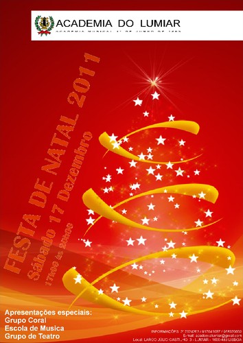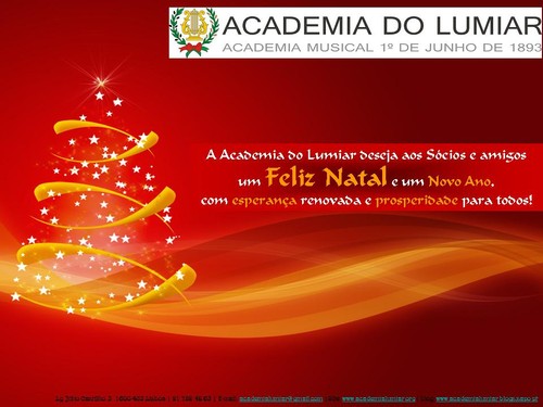 A Academia do Lumiar tem o prazer de convidar todos os sócios, amigos e respectivas famílias para a Festa de Natal da colectividade, a realizar no sábado, dia 17 de Dezembro, pelas 17.00h, na sede das nossas instalações.