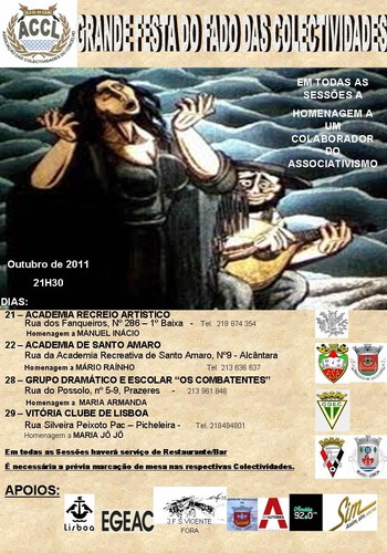 A Academia convida todos os Sócios e amigos a estarem presentes neste evento. A presença de todos é importante em representação das colectividades e do associativismo nesta Grande Festa do Fado, que hoje se inicia e que decorrerá até dia 29 de Outubro.
